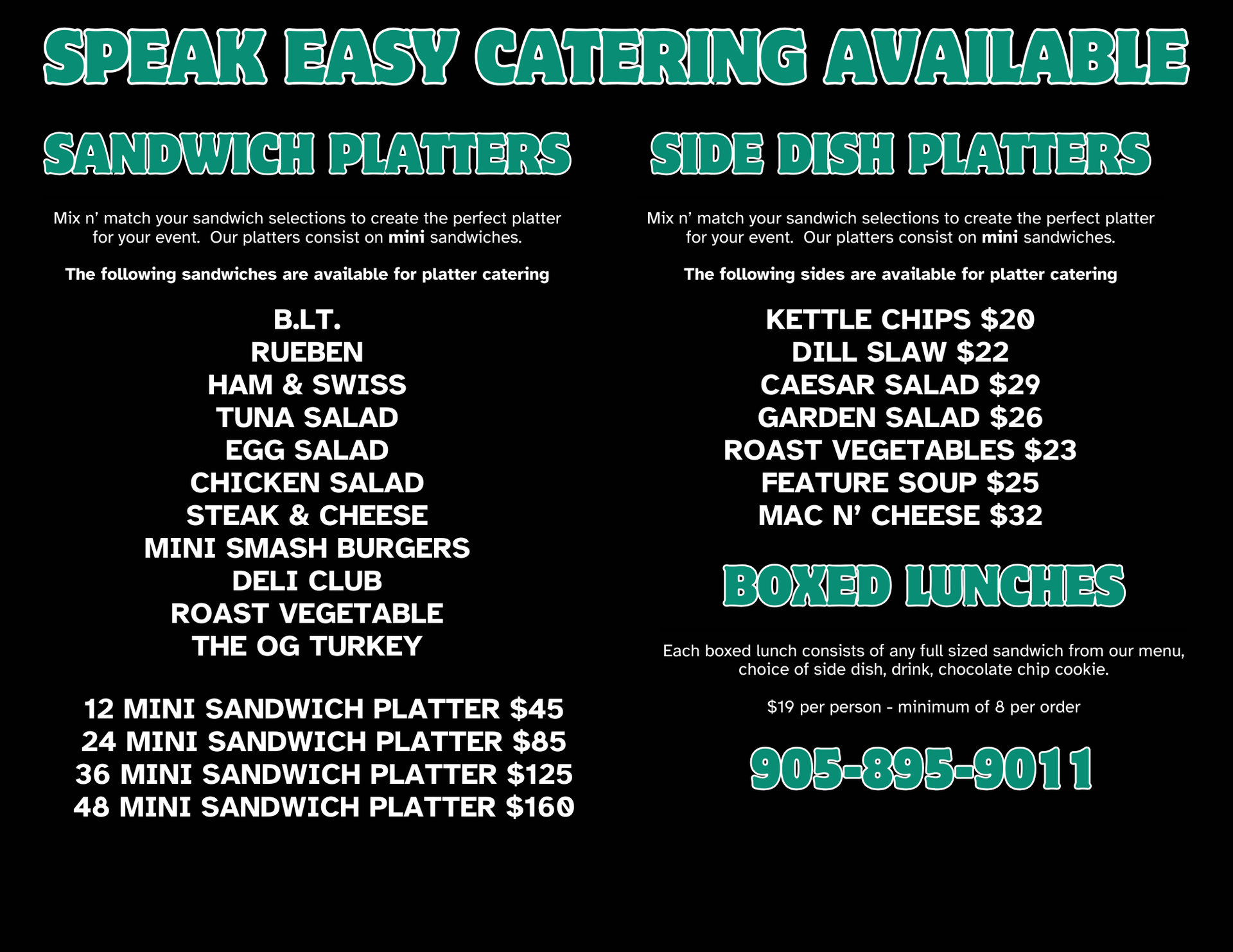 to place a catering order or get more information